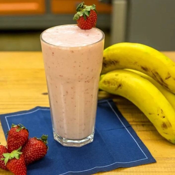 Saboroso vitamina com Banana Maçã Mamão Morango.