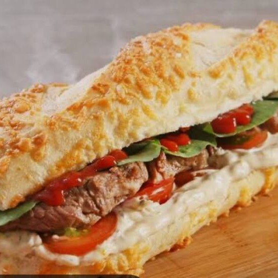 Delicioso Contra Filé em tiras acebolado Presunto Mussarela Tomate Azeite Orégano.