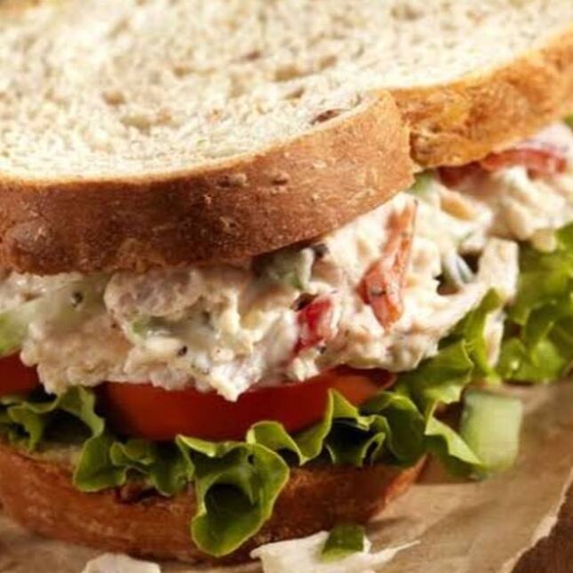 Delicioso Patê de frango desfiado Cenoura Cheiro verde Maionese Alface Tomate.