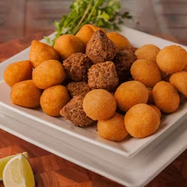 Salgados sabores: coxinha, bolinha de queijo, presunto e queijo, croquete de calabresa e kibe