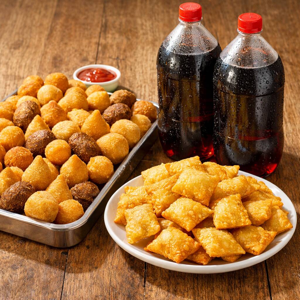 100 Mini pastéis + 100 Salgados + 2 esportivo