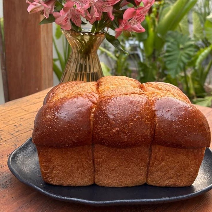 Pão bem amanteigado e levemente adocicado. Macio, levinho e extremamente saboroso