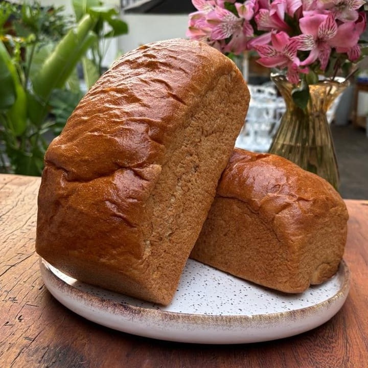 Pão artesanal 80% integral feito com farinha francesa. Macio, cheio de sabor e com textura leve