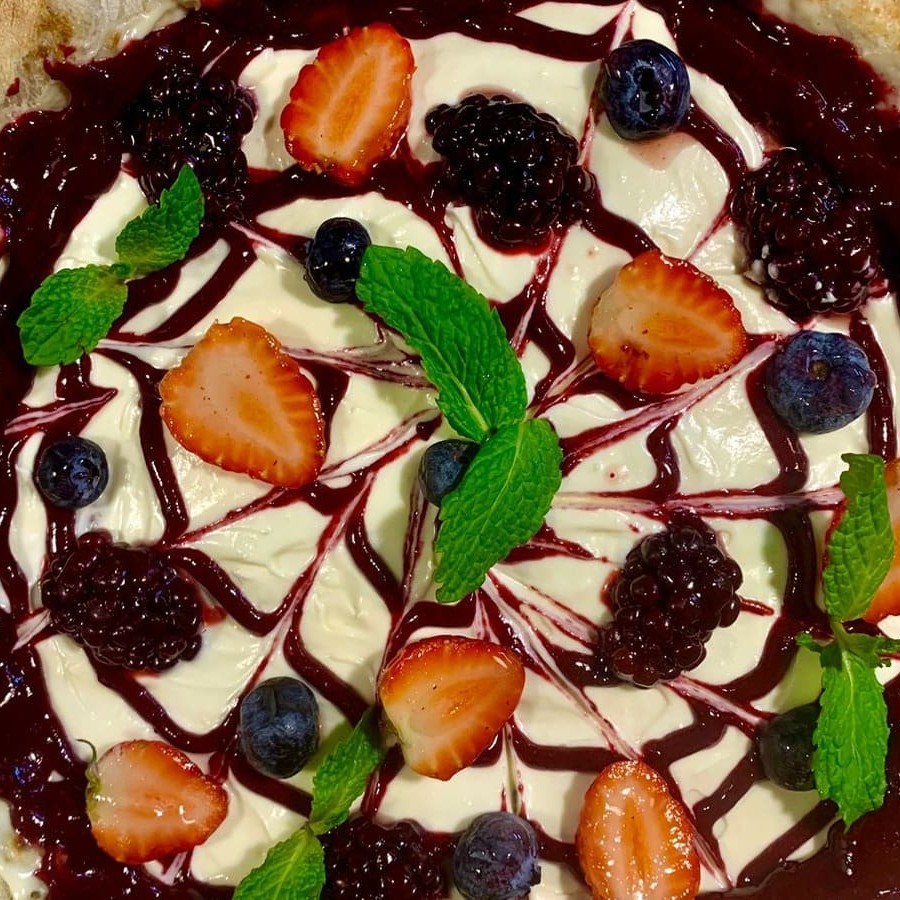 Uma verdadeira obra de arte em forma de pizza! Leveza e equilíbrio de sabores definem essa pizza, base feita com cream cheese Philadelphia, geleia de frutas vermelhas artesanal e frutas vermelhas frescas!