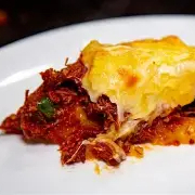 Feito com uma carne seca suculenta e bem temperada, é coberto por um purê de mandioca incrivelmente saboroso. Para finalizar, uma generosa camada de mussarela derretida.
