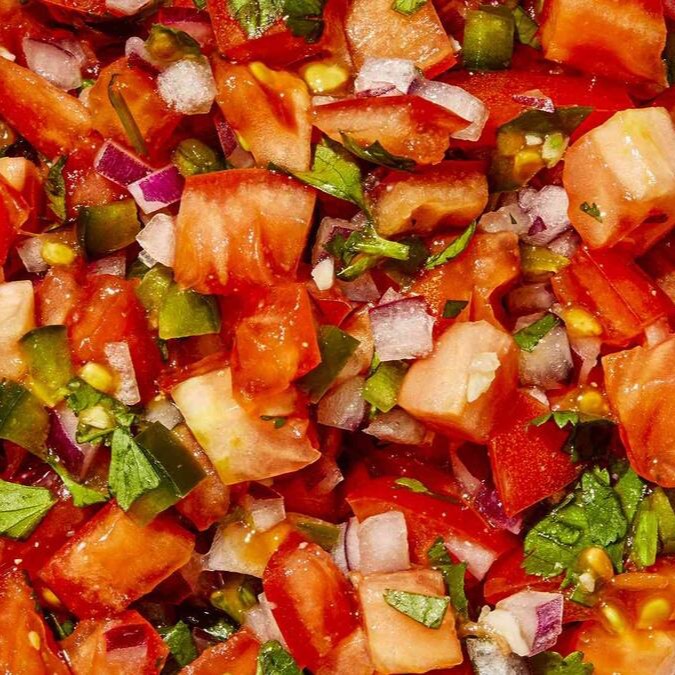 Desfrute do nosso 'Pico de Gallo', um dos mais deliciosos molhos mexicanos! Este molho é uma combinação vibrante e fresca de tomates suculentos e coentro aromático, temperados com um toque de sal para realçar os sabores. O acréscimo de limão proporciona um toque cítrico delicioso que equilibra perfeitamente a mistura. Por fim, uma seleção de especiarias é adicionada para dar um toque extra de sabor e autenticidade. Uma explosão de sabor que irá te transportar diretamente para o coração do México!