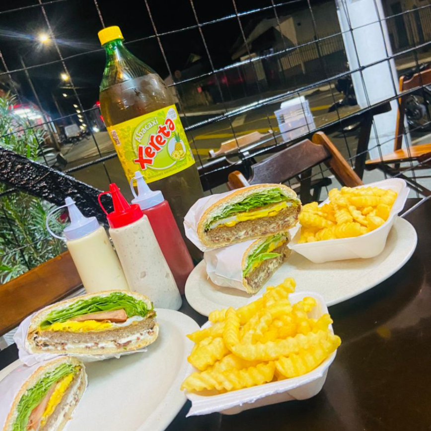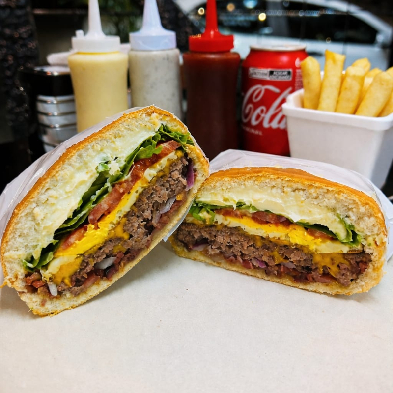 Pão Alface, Tomate, Hambúrguer, Bacon, Ovo, Queijo Prato, Cream Cheese
