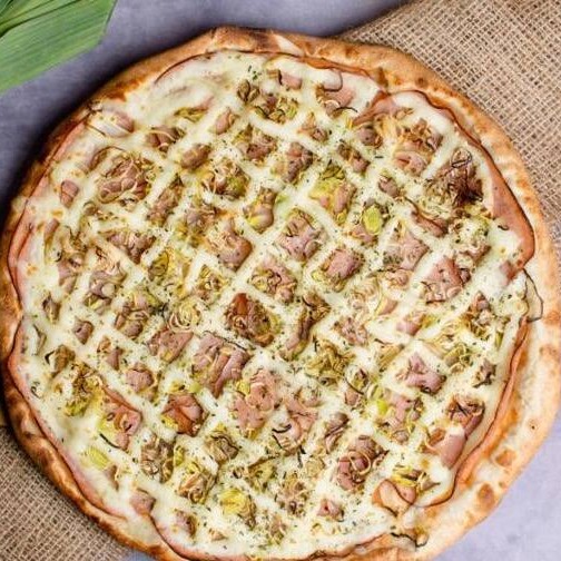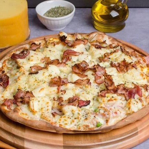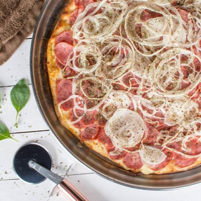 Molho artesanal de tomate, finas fatias de calabresa e anéis de cebolas com um toque de orégano !