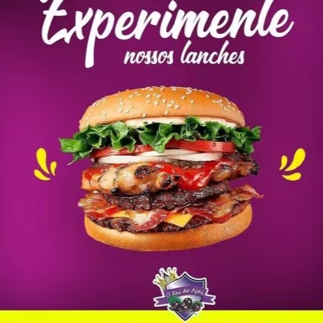 Hambúrguer120g , bacon, muçarela, presunto, maionese e ketchup.