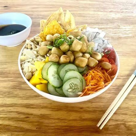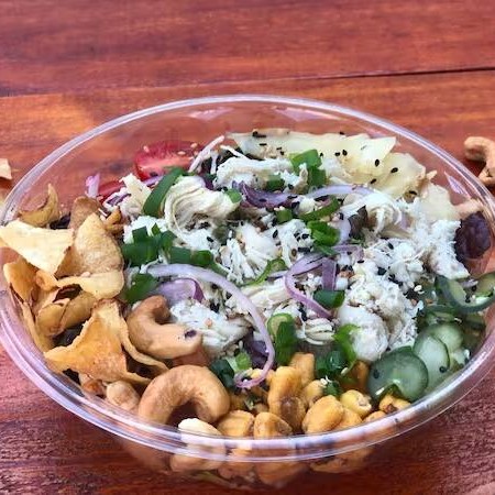 Escolha até 2 bases, até 3 Topping, até 2 crunches, 1 nut, 1 molho e finalize como desejar. ( o peso do prato pode variar de acordo com os ingredientes escolhidos ).