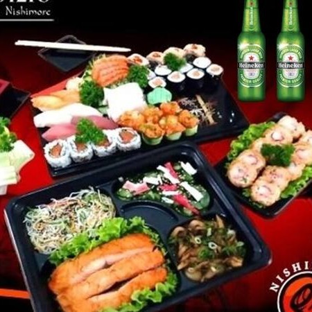 10 sashimi(5 salmão, 5 peixe branco),6 jow variados, 4 uramaki salmão, 4 uramaki especial, 8 hossomaki (4 salmão, 4 pepino), 1 hot especial, 1 bifun, 1 shimeji, 1 sonomono, 3 pedaços de salmão grelhado, 2 cerveja( ira a cerveja que tivermos no diponivel no estoque).