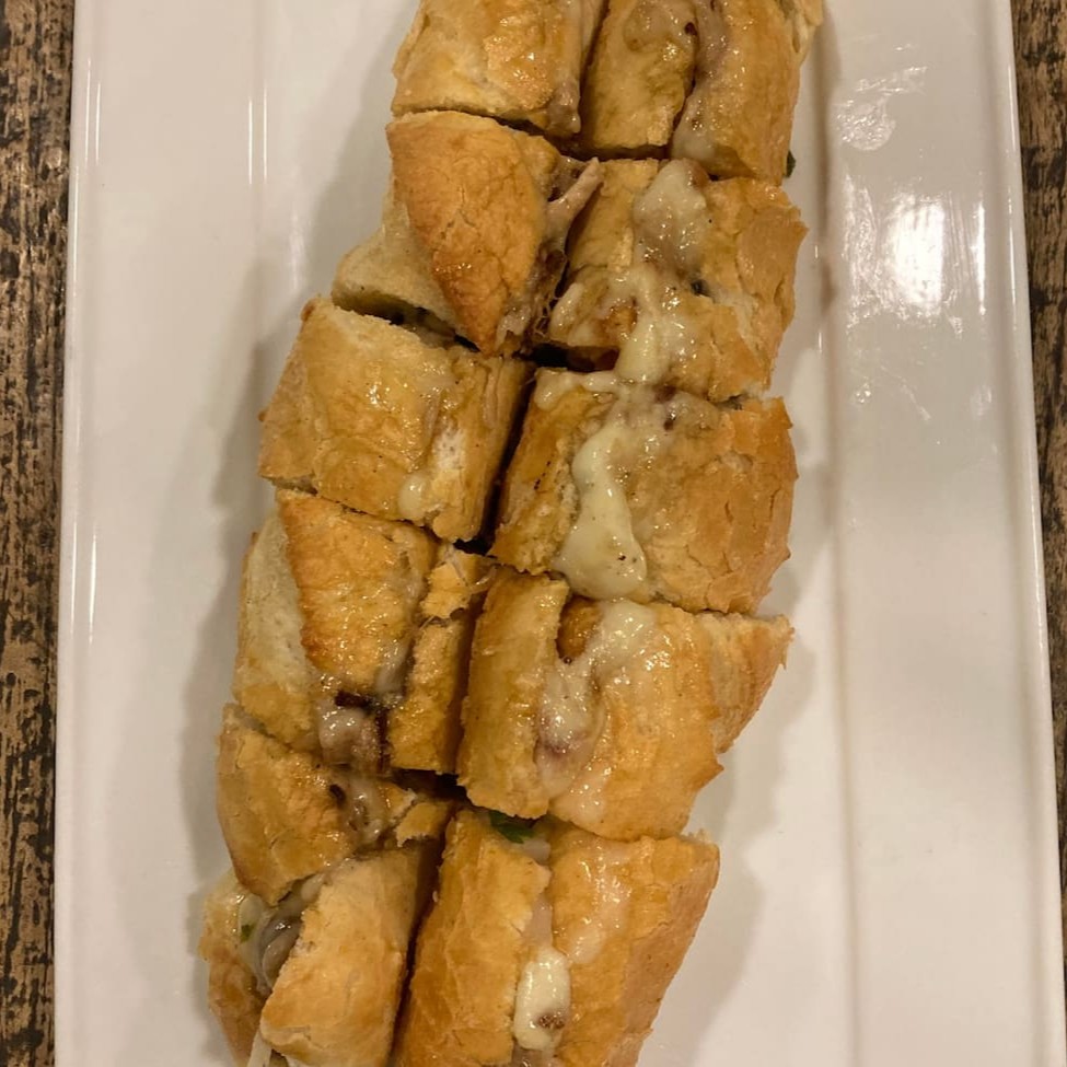 (pernil, mussarela, vinagrete na baguete)