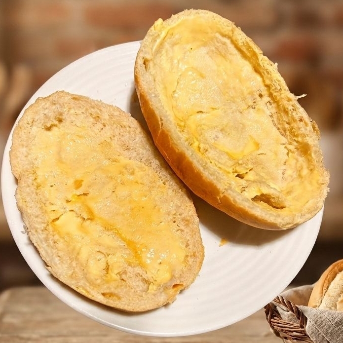 Pão com manteiga na chapa e requeijão por cima