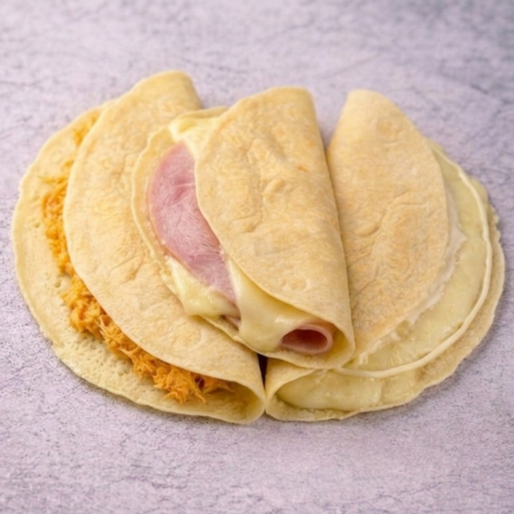 Crepioca feita com 1 ovo e goma de tapioca e recheio a sua escolha; imagem meramente ilustrativa