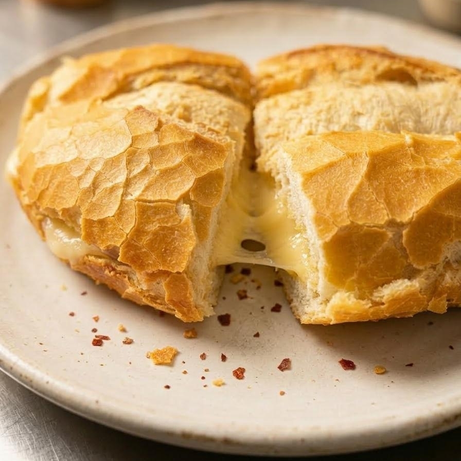 Pão francês com 4 fatias de mussarela derretida