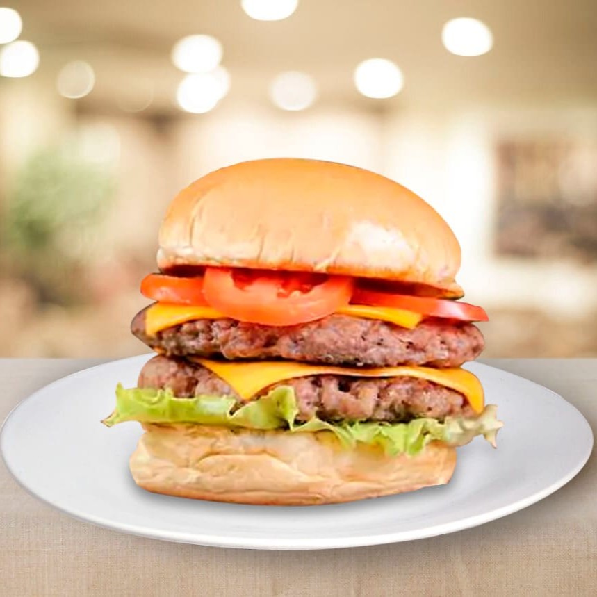 Pão de hambúrguer premium, 2 hamburgueres de costela e fraldinha 170g, bacon, alface e tomate