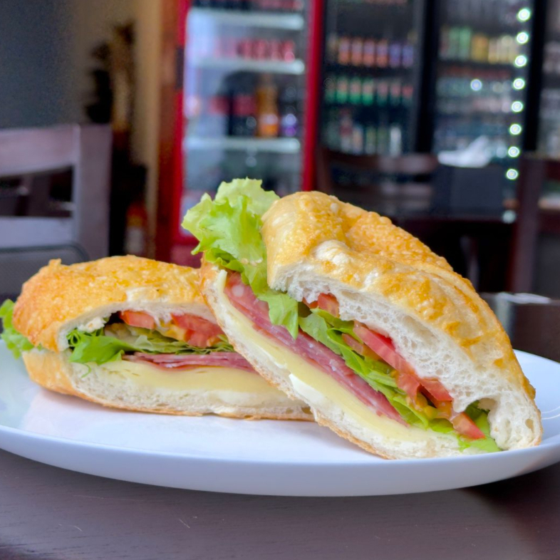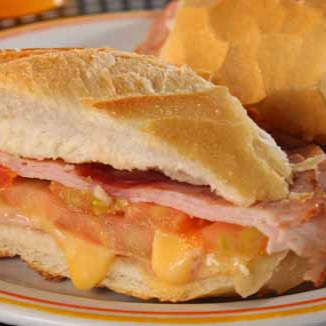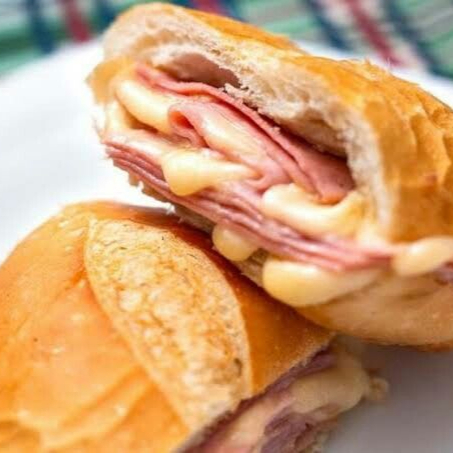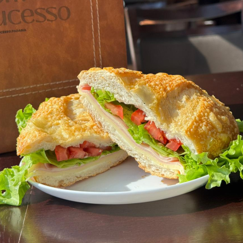 Pão francês, presunto e mussarela.