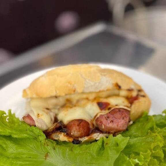 Linguiça toscana, vinagrete saborosa, queijo e molho especial da casa