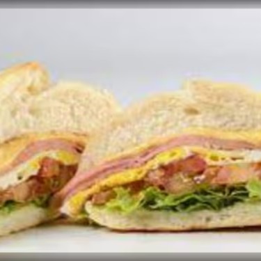 Presunto, queijo, ovo, alface e tomate no pão francês.