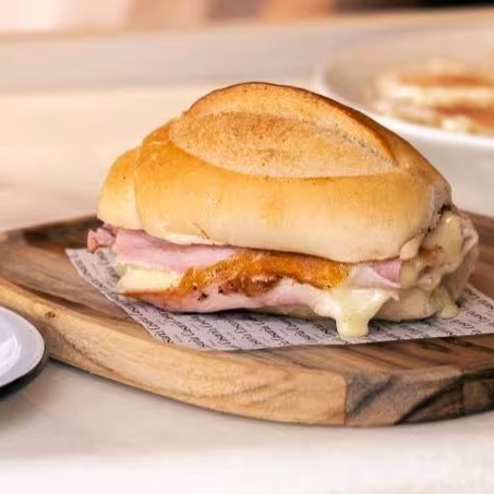 Pão francês, presunto e queijo feito na chapa