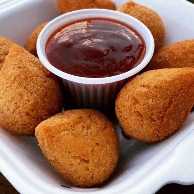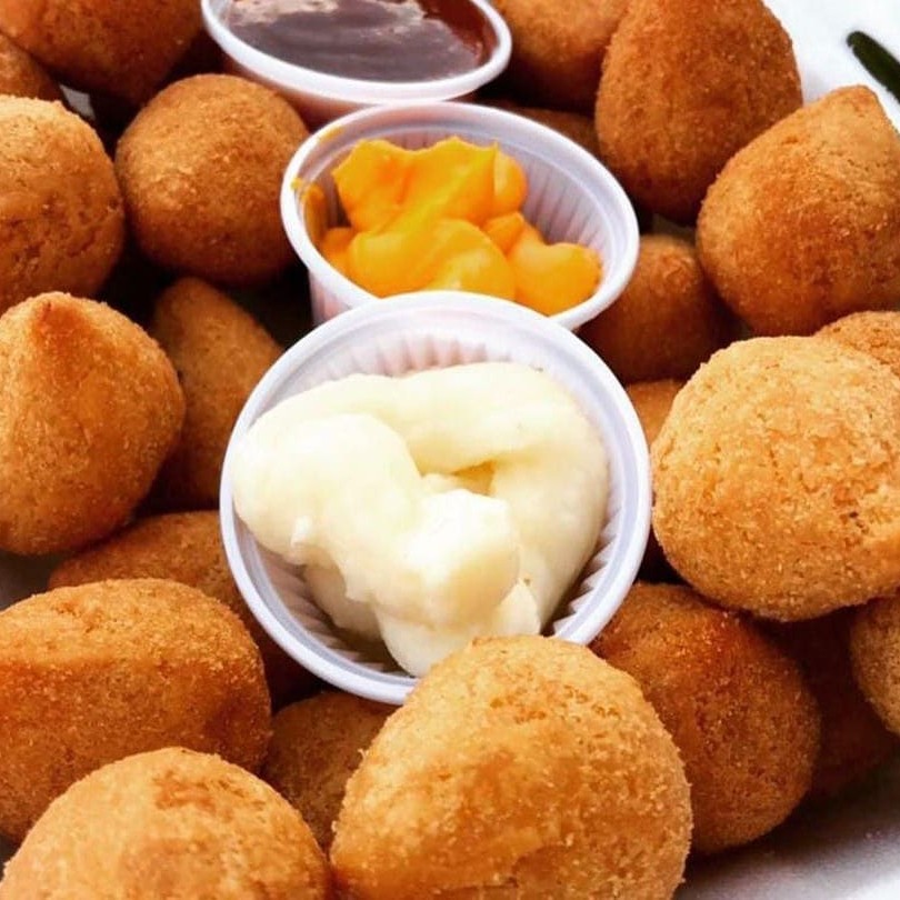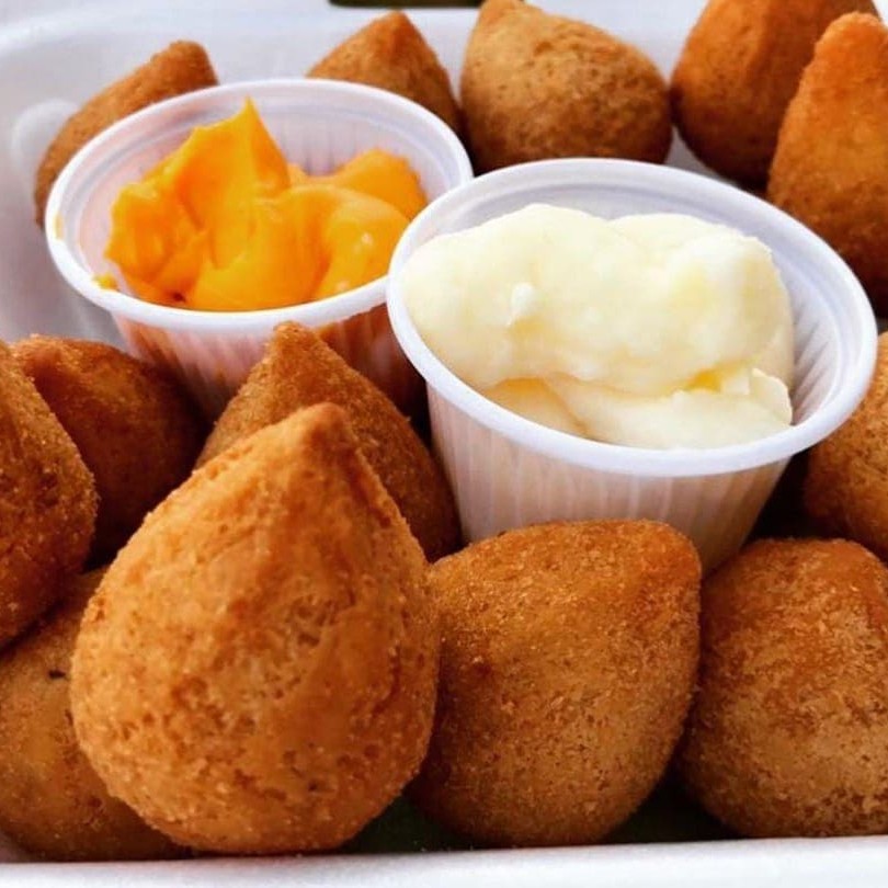 8 unidades de mini coxinhas de massa artesanal recheada de frango Acompanha: Molho de sua preferência