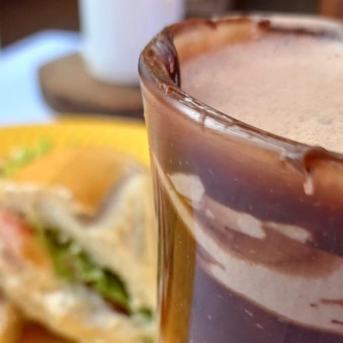 Se você é chocolatra e ama café, deveria experimentar essa delícia! Chocolate em pedaços no fundo do copo, leite e quente e café expresso