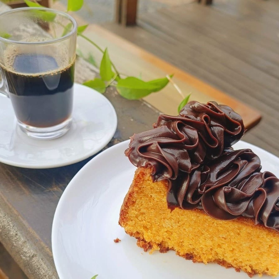 Bolo de massa artesanal fofinha feito com cenoura de verdade Com cobertura de brigadeiro Gourmet (160grs) Serve em média de 6 a 8 pedaços (Varia conforme o corte)