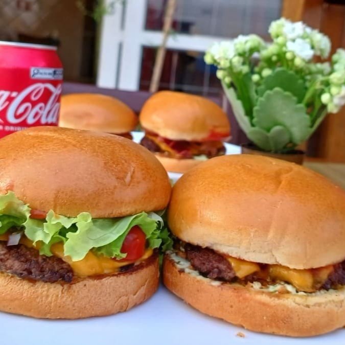 Um delioso burguer salada artesanal com fritas + Bebida lata da sua escolha