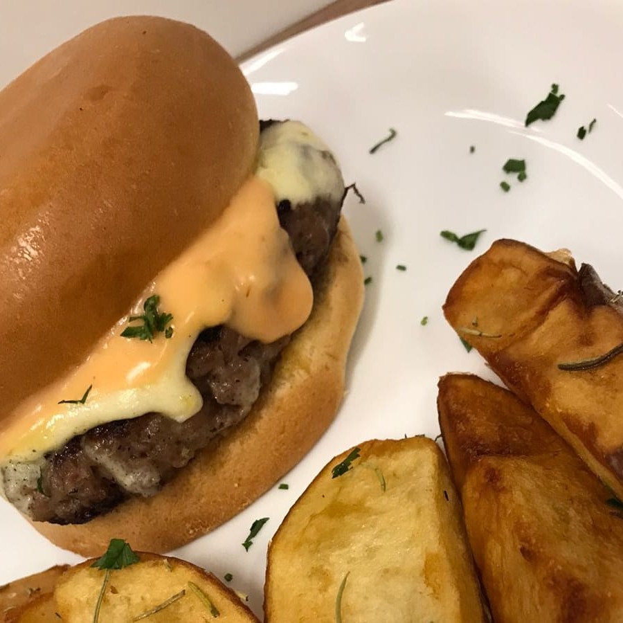 Pão, Hambúrguer Artesanal 160gr, Queijo e Molho Acompanha Fritas
