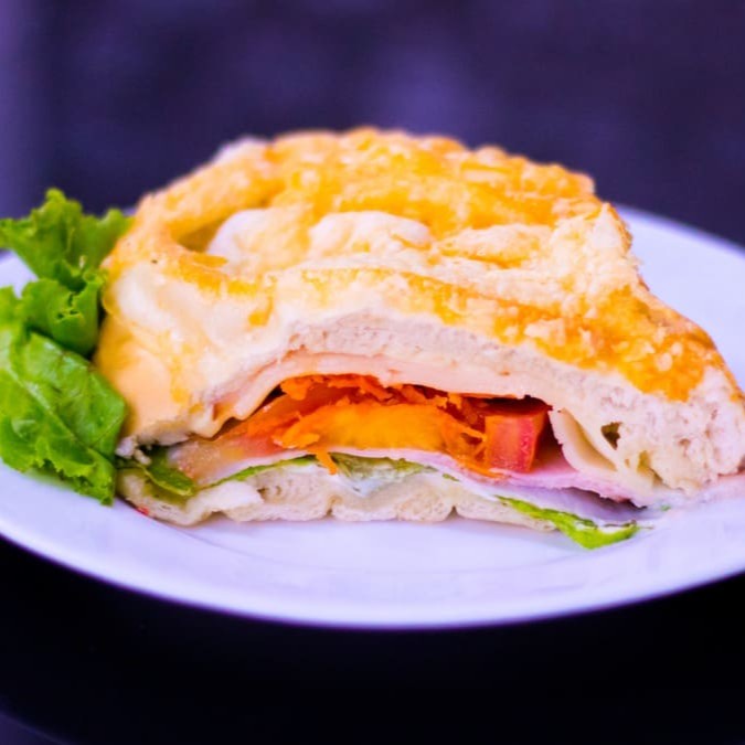 Pão Francês com Alface, Tomate, Pate, Queijo e Cenoura, e você escolher se prefere Presunto, Peito de Peru ou Salame