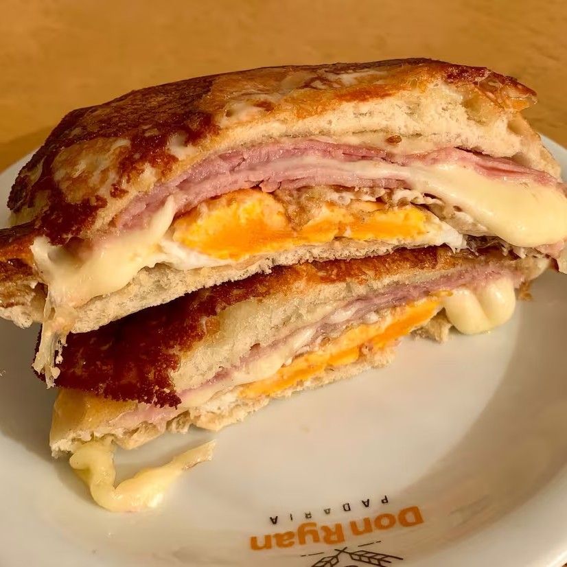 3 ovos, creme de leite, 2 fatias de bacon, 1 fatia de pão careiro na chapa.