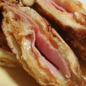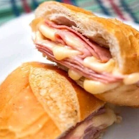 Um misto quente no pão frances com 2 fatias de presunto 2 fatias de queijo mussarela bem quentinho na chapa