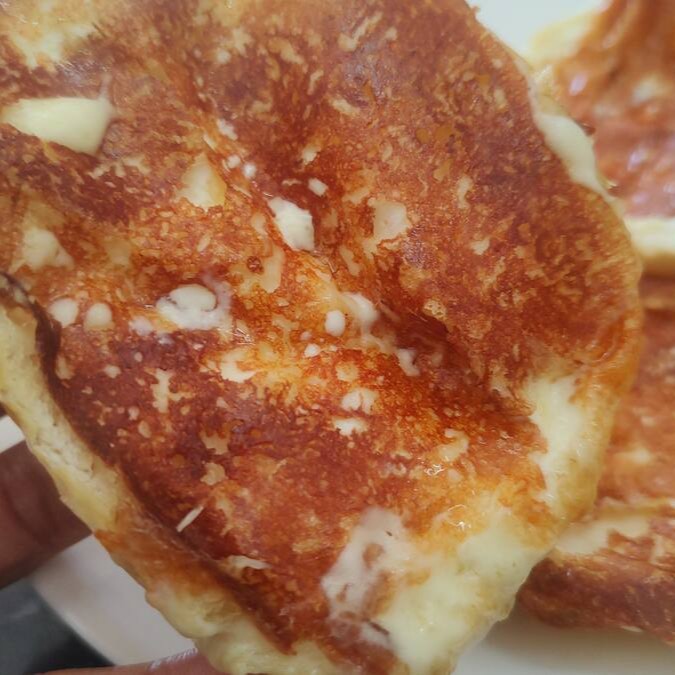 Pão com dois ovos mexidos e mussarela derretida