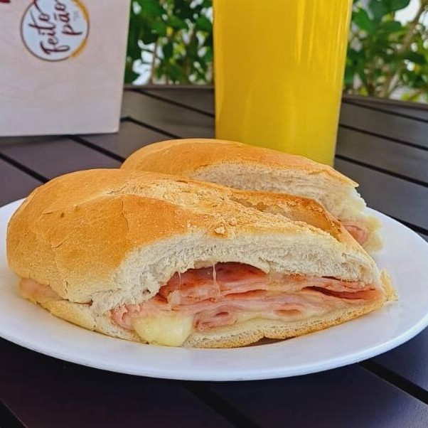 Delicioso misto quente na baguete com 3 fatias de presunto e 3 fatias de queijo muzarela.