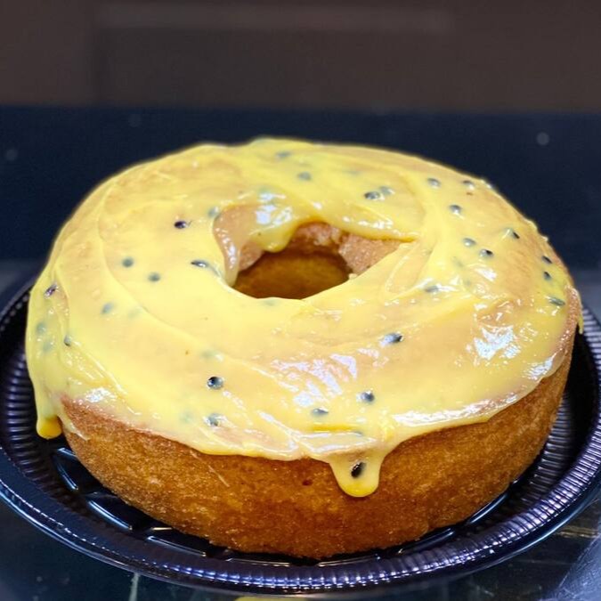 Bolo Grande de Maracujá 700g, massa macia com calda levemente cítrica