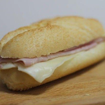 Pão francês, requeijão, mussarela e presunto.