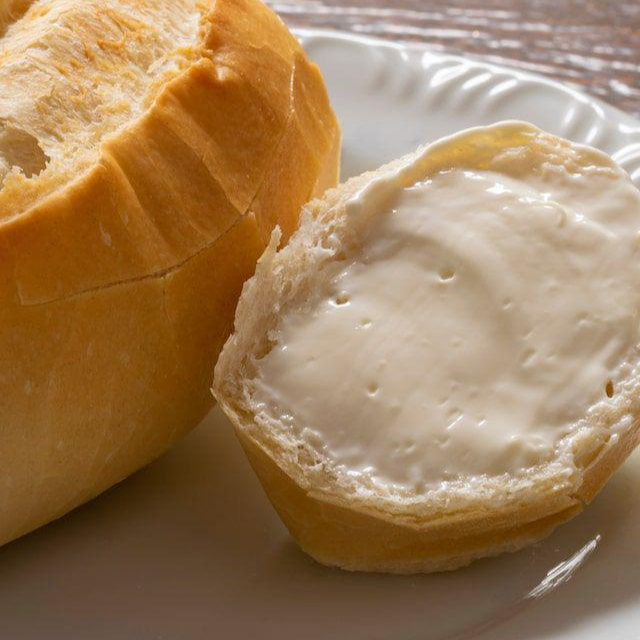 Pão francês e manteiga.