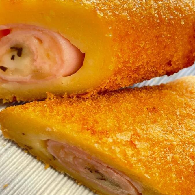 Massa de batata, com recheio presunto e queijo com Catupiry.