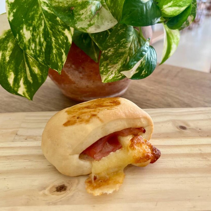 Mini pão caseiro com recheio de muçarela.