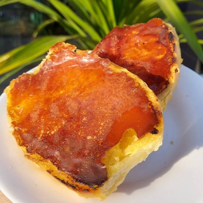 Pão francês com manteiga na chapa.