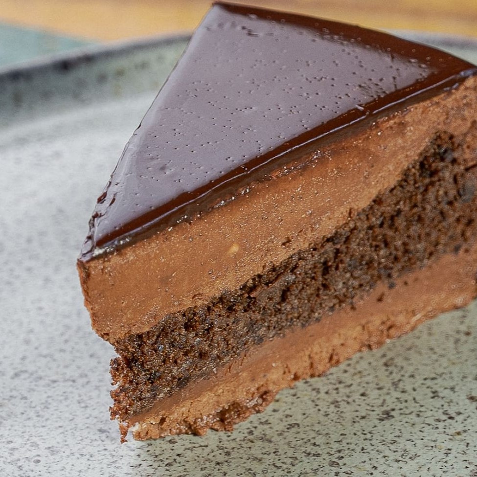 Fatia de bolo mousse feito 100% com farinha de amêndoas + chocolate 70%