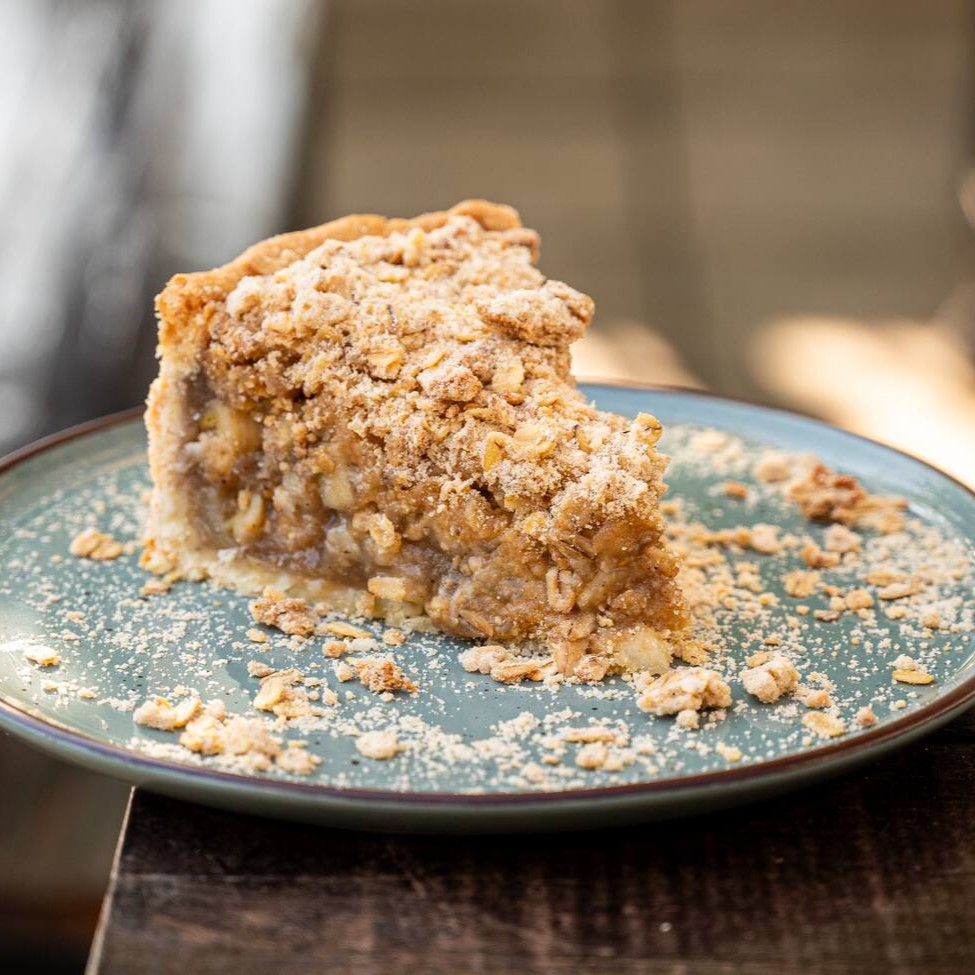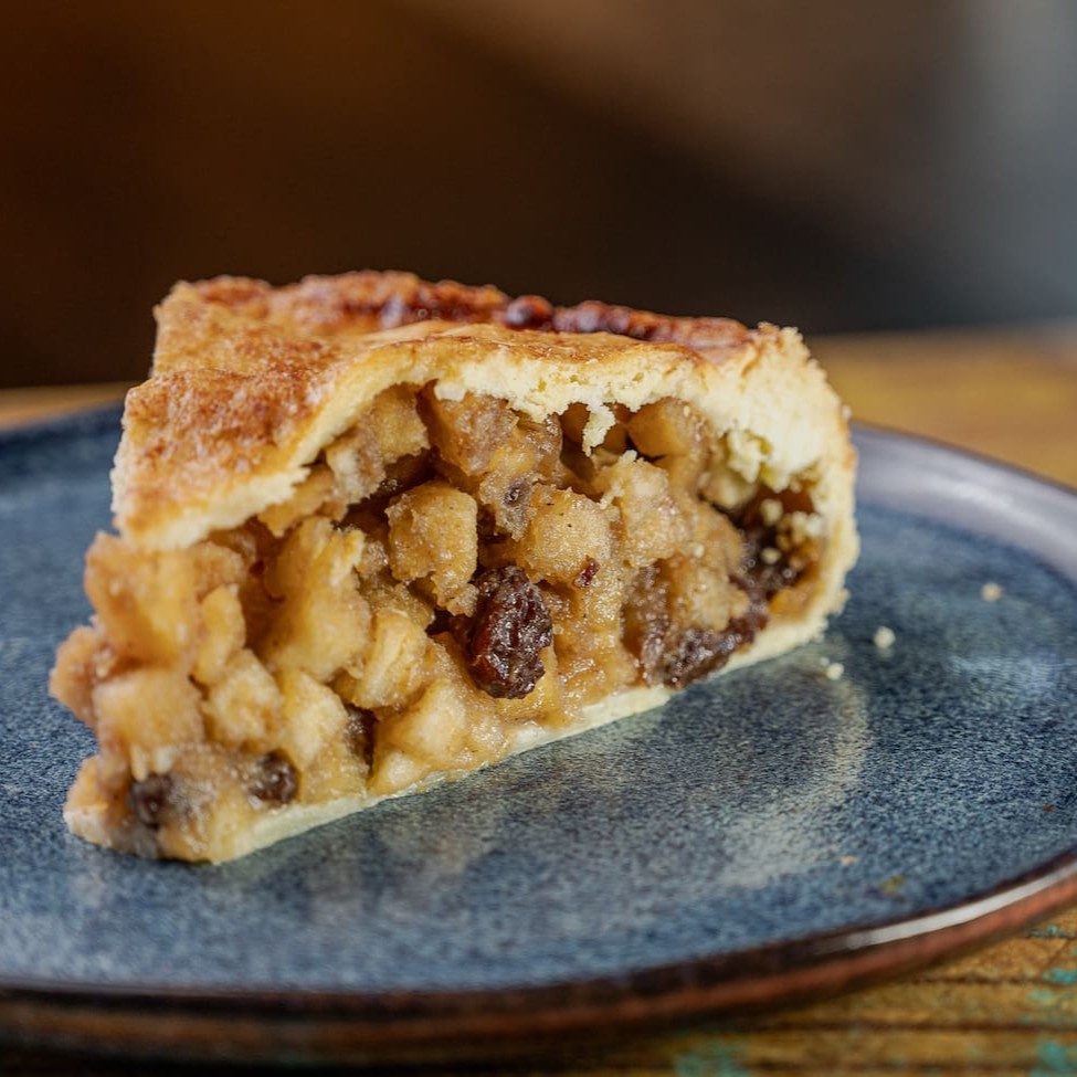 Deliciosa fatia de torta de maças frescas, e um blend de especiarias .