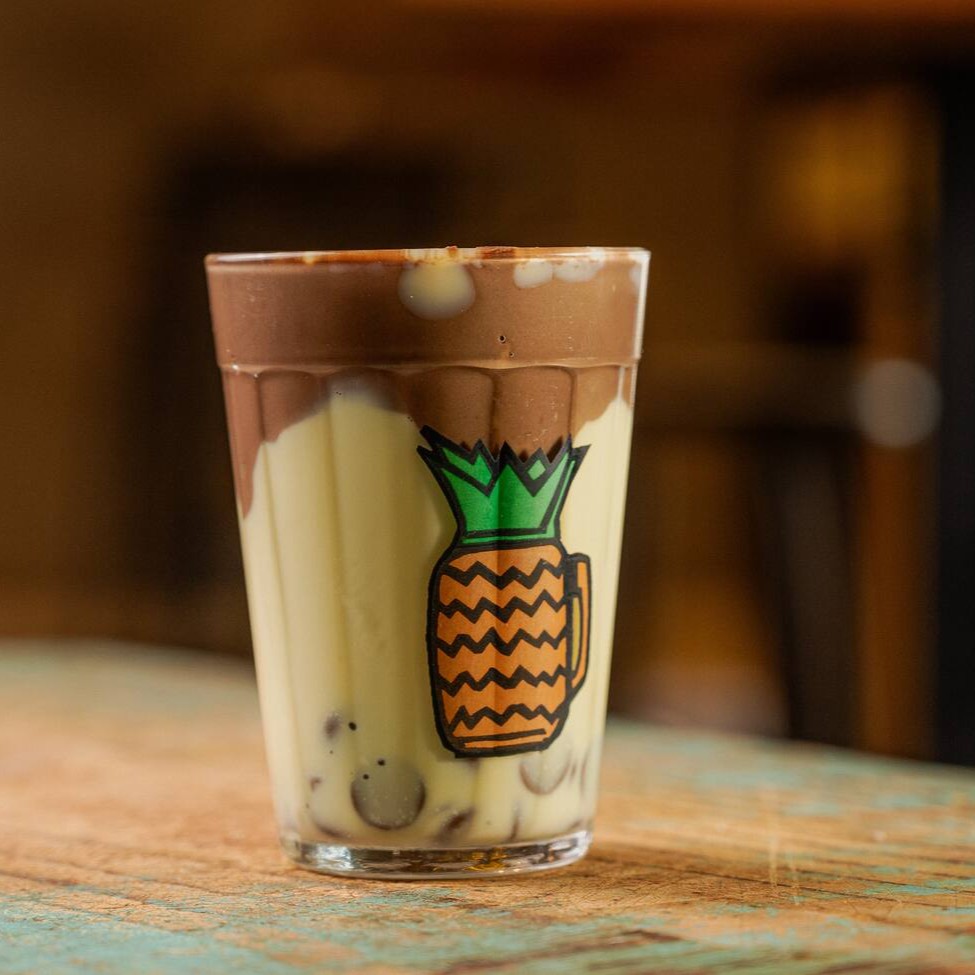 Leite gelado e um mix de delicioso de cacau 100% e 33% 350ml
