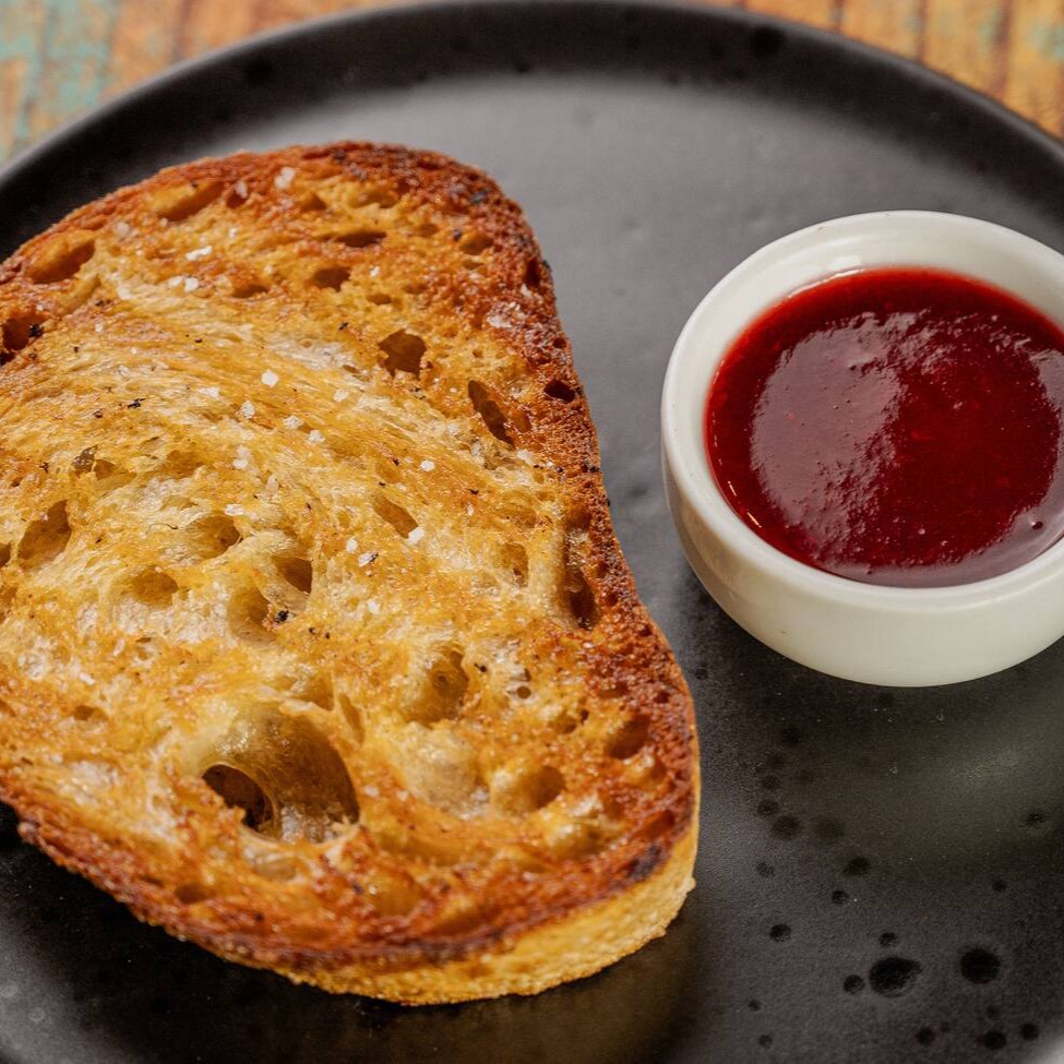 Brioche ou pão do Dia na chapa com manteiga ou azeite. Acompanha geléia da casa