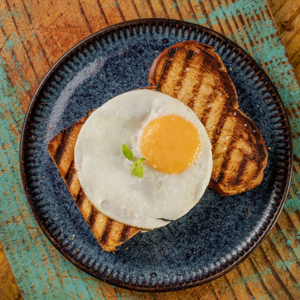 Delicioso pão brioche com ovo. Escolha o ponto da gema nos complementos!