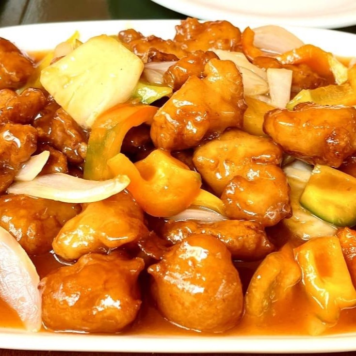 D78g- Lombo Frito ao Molho Agridoce--Grande,(imagem meramente ilustrativa)