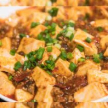 D102-Tofu Quadrado Pequeno Cozido com Carne Suína Moída e Molho Apimentado