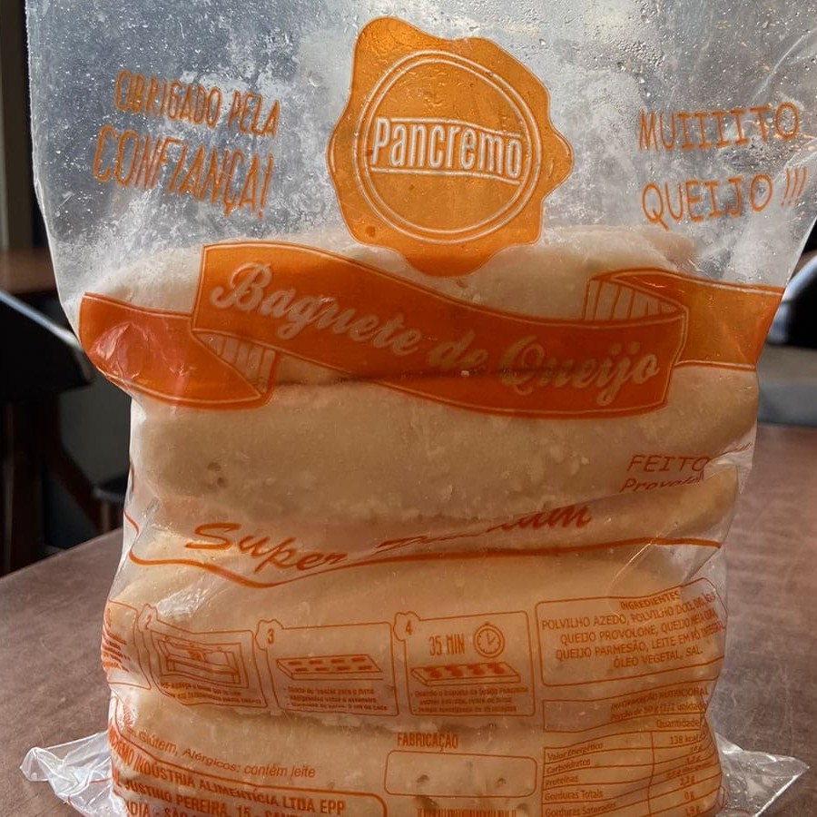 Produzida com três vezes mais queijo em relação a nossa receita tradicional, a Baguete Super Premium Pancremo foi especialmente elaborada com queijos: provolone, meia cura e parmesão, e o que prevalece é o sabor marcante defumado do provolone. Unidade de pão de queijo baguete assado, feito com parmesão, meia cura e provolone defumado. Sem glutem!