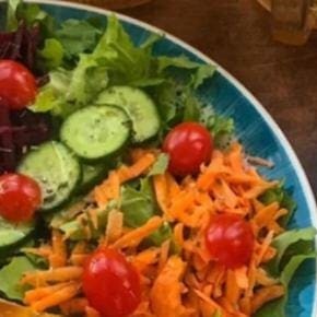 Mix de alface, rucula, cenoura, beterraba, pepino e azeite. Acompanha sal e tempero especial para saladas.