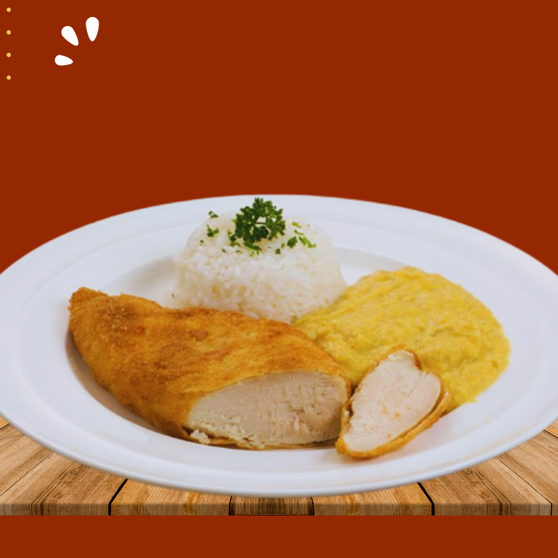 Filé De Frango Empanado - Acompanha Arroz E Creme De Milho